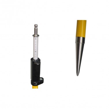 Im Lieferumfang ist ein Adapter enthalten, der an das entsprechende Prisma angepasst wurde (Leica, Zeiss, Sokkia…) und die Kippachsenhöhe des Prismas an die Skala des Prismenstabes angleicht.