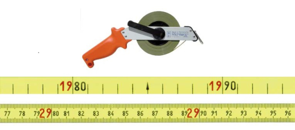 Stahlbandmaß gelblackiert in Leichtmetallrahmen Typ "SR" 25m